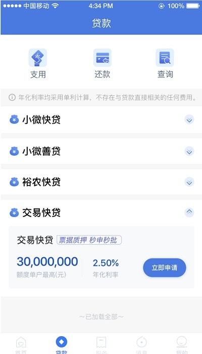 新增个体户经营快贷、抵押快贷等产品线上申办功能