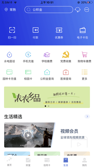 生活:不止金融,更懂生活:美食、电影、专车等一站式娱乐生活,你喜欢的品质生活我都有。
