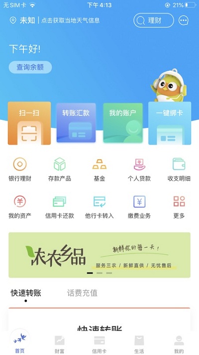 常熟农商银行手机银行app主要是网上也能随时随地查看自己账户的余额以及消费清单,常熟农商银行手机银行还可以在线转账、理财更服务比别的软件更加安全,在合作的店铺里面消费还可以抵现,更加划算。