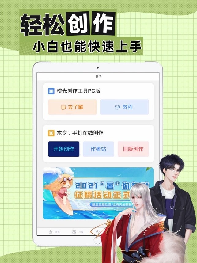 在橙光,作者可以借助平台免费提供的制作工具,利用工具内素材库提供的图片、音乐、UI、特效等海量素材,结合原创文字剧情,创作全沉浸式体验的互动作品;