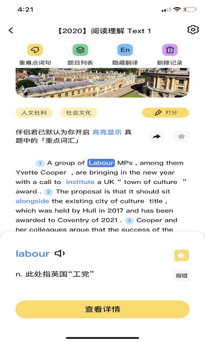 除包含真题来源信息,官方公布的难度数据外,还有做题研友对于题目文章的难度评分,帮你准确get自己的学习水平!
