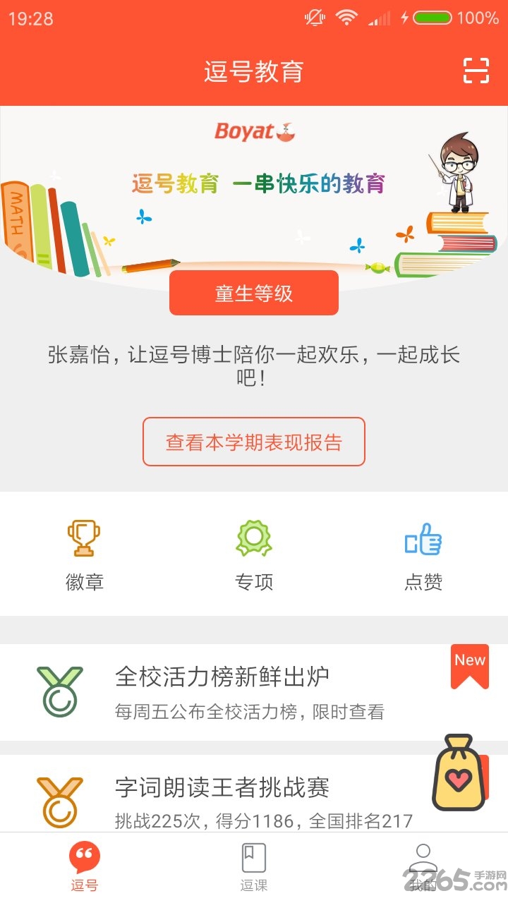 在北京大学游戏化学习研究团队指导下开发的,支持学校记录学生发展数据,家长了解孩子成长轨迹的教育应用。通过即时反馈、智能化诊断,让家长随时掌握孩子的发展动态,帮助孩子享受快乐有效的学习。我们致力于让学习成为一串快乐的逗号。
