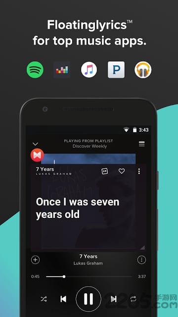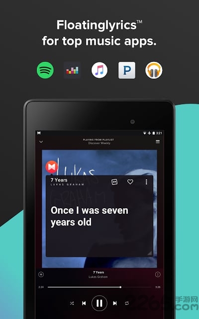 发现FloatingLyrics功能播放您喜爱的歌曲,并与 Spotify、播放音乐、潘多拉和其他音乐应用程序时享受同步的歌词。