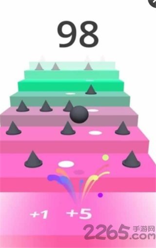 7.如果让小球碰到尖刺游戏就将失败,而连续踩到白色的区域则会获得加分并且让楼梯转变出奇妙的颜色哦。