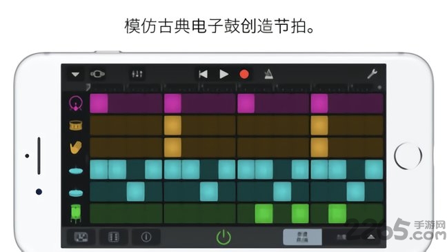 使用触控乐器、音频录音和乐段来录制、编配和混音乐曲,最多可达 32 条轨道