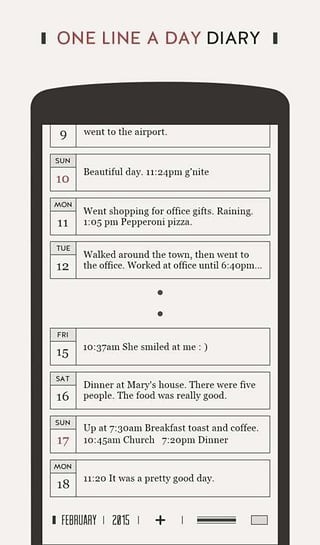 ■ 预览 – 主界面可预览每日日记的前一行或前两行文字