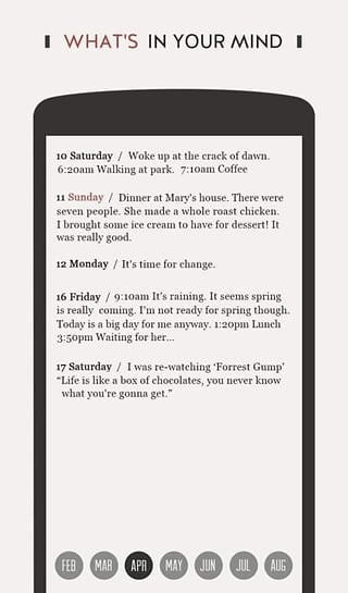 这是一个很好用的手机记录软件,在平台上面界面设计极简,为您带来超乎一般日记应用的使用体验。一日一句,记录日常生活,有助于养成每天写日记的习惯。回顾今天,记录今天,感受今天,期望明天。