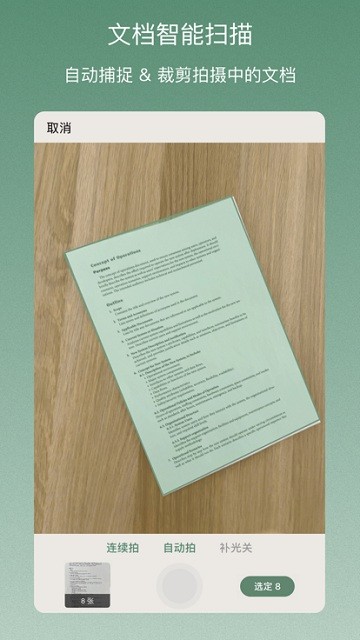 新增扫描相机,可以快速拍摄您需要的文档照片,拍照时支持文档智能捕捉和裁剪矫正,支持批量拍摄;