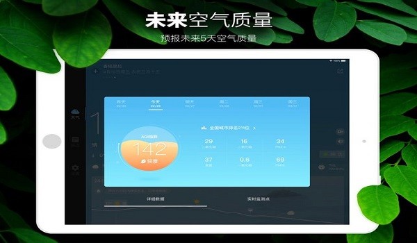 包含国内外2.5w+城市以及国内8000k+景区的天气信息,采用国内外多家气象机构数据,天气预报信息准确全面。空气污染指数,pm2.5,空气污染指数排名!