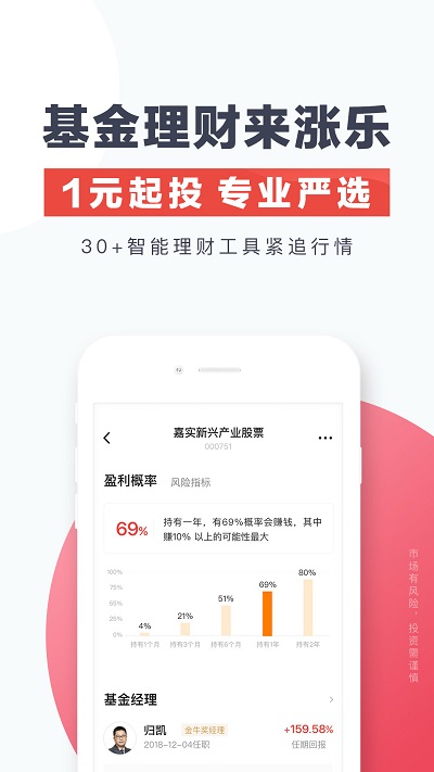 2、全新资产配置--智能匹配符合您财富配置需求的资产配置计划,真正实现风险分散投资;一键生成专属配置计划,资金进出灵活;隔离“我的账户”,配置收益一目了然。