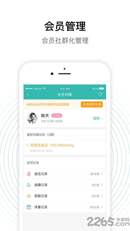 会员通过配套智能设备监测所产生的健康数据一览,数据可用于会员复购时的用药指导,让销售富有人文关怀及更加精准有效。
