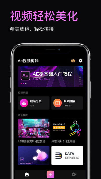 ae视频剪辑ios版本是一款非常好用的视频剪辑软件,在软件里面有新手教学的入门课程供用户进行学习,而且还有许多的素材可以供用户借鉴,在软件里面剪辑视频也是十分的方便,还有各种有趣的配图可以使用,感兴趣的朋友们快来下载体验吧!