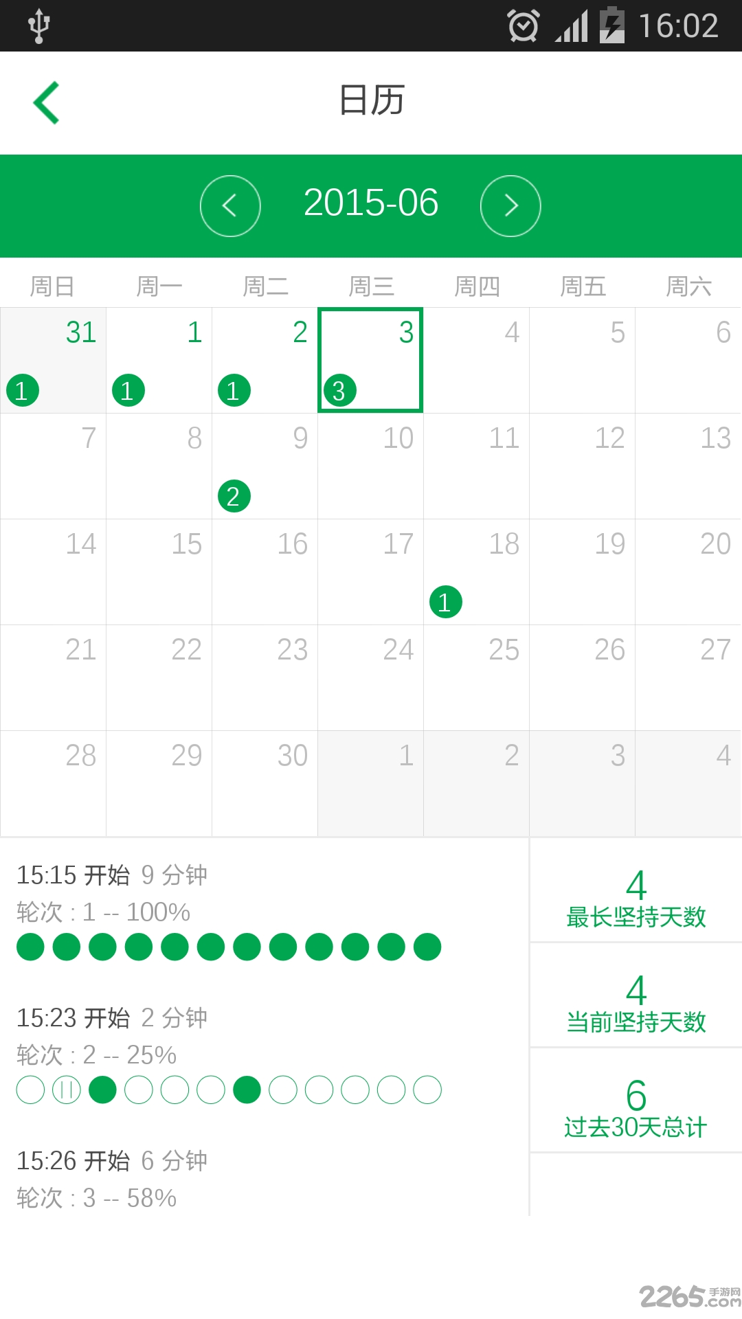 1、锻炼日志可以显示完整的锻炼时间