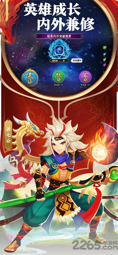 玩家进行内丹培养,培养后的内丹会为拥有的所有英雄提供属性提升,无需装备和更换