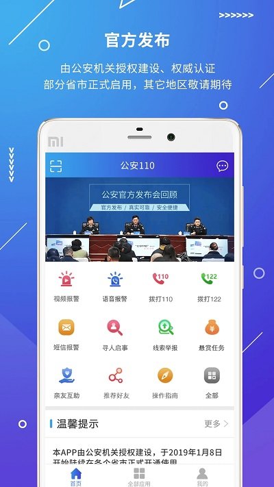 基于“互联网+公安”研发的手机报警软件,市民可直接在线视频报警,警民互动不良行为举报投诉,仅可以便利群众报警求助,公安110app还可提升公安机关的扁平化指挥能力,有助于公开执法和执法监督。
