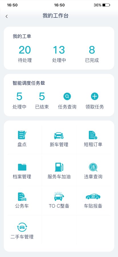 联动云租车员工端苹果app功能