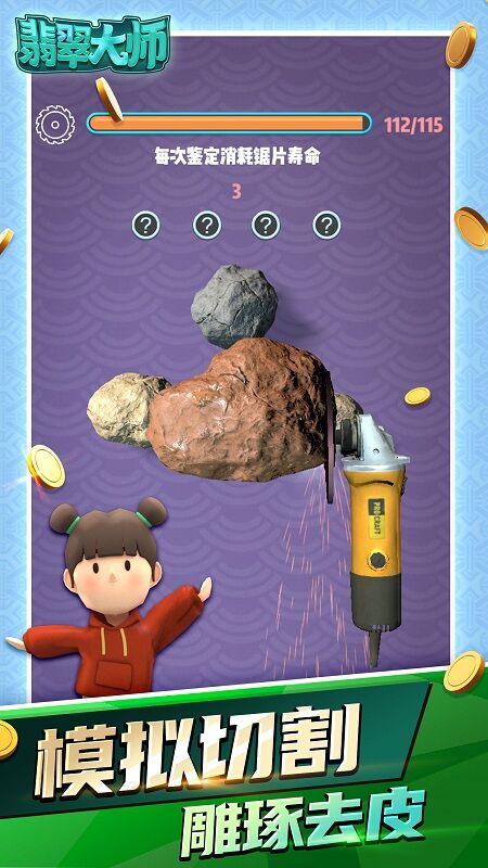 模拟真实原石挑选流程,手电照射、锯片开窗鉴定原石,考验策略和运气。切出翡翠,选定图样,滑动手指即可雕刻抛光,简单轻松易上手细腻的视觉特效,让人沉浸的音效和震感,还原真实的打磨体验。