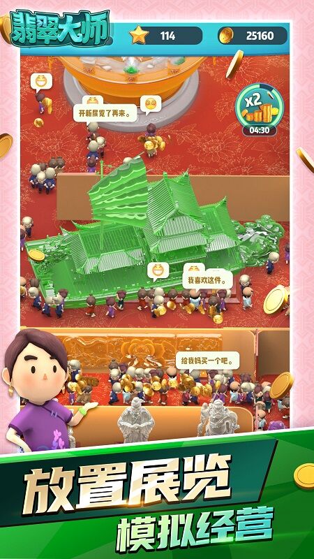 变身展馆主理人,收集翡翠带来门票收入,购买更高档翡翠吸引更多顾客参观,形成完美正循环。14个不同主题展厅,多题材系列展品,四大金刚,八仙过海,十二生肖等满足你的收集欲。
