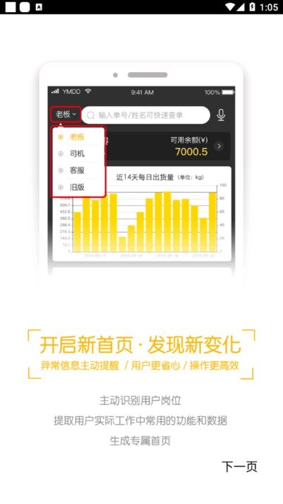 壹米滴答快运业务产品的工具使用终端,帮助数万名壹米滴答伙伴完成从下单、运输、签收全链条的工作,利用大数据、AI算法等方式,智能准确地帮助工作人员完成每个任务节点,缩短过程时间,提高工作效率,减轻工作人员的负担。
