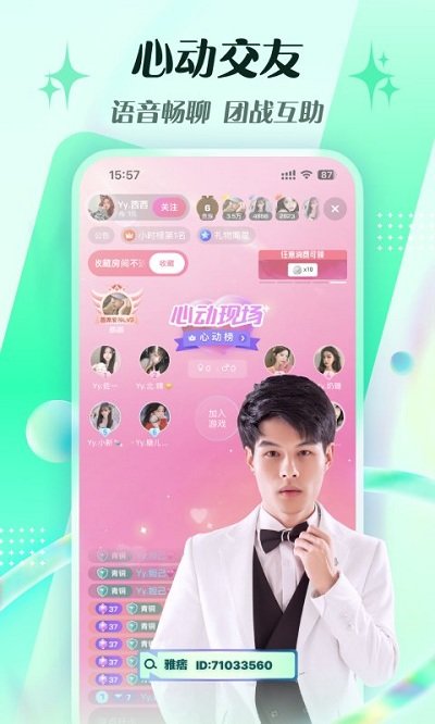 + 爱神主持超热门团战现场,让你不再孤单,互动游戏时刻开启~为你提供心动现场,为你的心动提供一个栖息之地,交友之路不在困难,脱单之路尤其简单。