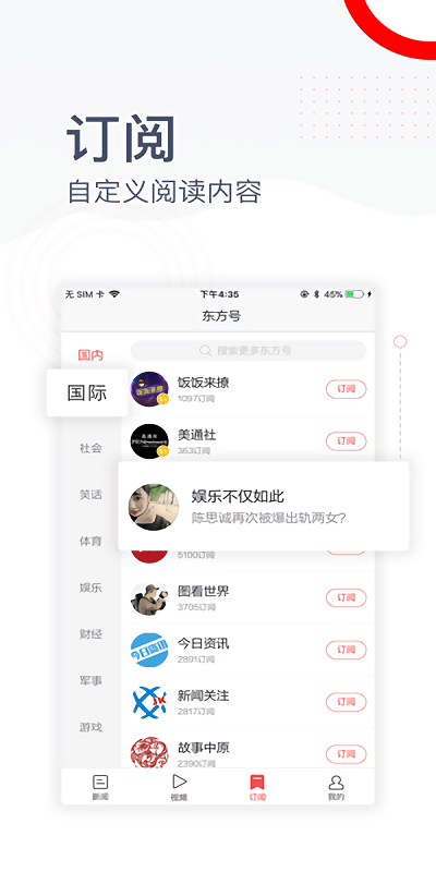 基于我们的算法,撇弃复杂的设置, 使用很简单,功能很强大,轻 松能看你想看的资讯。