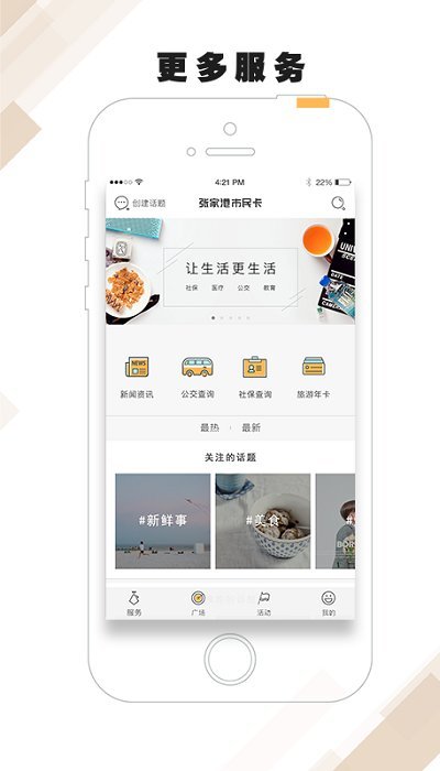 张家港市民卡ios版是张家港市民卡官方手机应用,集合市民卡、旅游年卡、办事大厅、房源信息、生活缴费、虚拟养老院 、新闻资讯、社区信息和港城风采等服 务为一体,市民卡的功能和app同步实现,市民下载APP更可享受丰富的社区活动和积分换礼等服务,体验新 时代科技的优质市民生活。