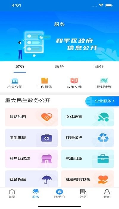 ·企业通过企业服务板块能获取最新惠企政策法规,上报企业在生产经营过程中遇到的问题与难点