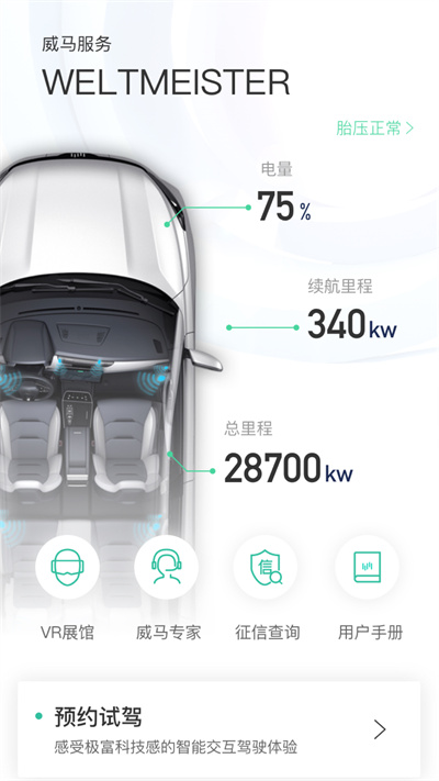 威马智行苹果app是一款新能源汽车服务软件,软件为用户提供多方位的汽车服务,在这里不仅可以查看汽车的信息,还能通过软件和其他的车友进行互动,分享更多的用车体验,感兴趣的朋友快来下载试试吧!