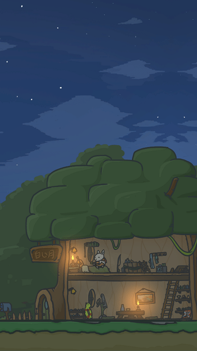 游戏的时间机制有很强的真实特点,他的时间是完全符合现实的时间,按照标准的时间来变换天气的情况,虽然还没有做到可以跟实景的天气一致,但是早晚中午的变化以及可以映射了一部分真实感觉,当你晚上睡觉的时候,打开手机上一下游戏,发现月兔也在跟你一样准备躺在床上的感觉,就跟你自己是一样的!