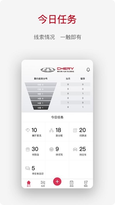 奇瑞crm苹果版是一款营销软件,软件专为奇瑞汽车销售人员打造,通过软件可以帮助销售人员更加方便的进行工作,让汽车销售人员更好的管理客户,让工作更加高效,非常的使用,快来下载看看吧!