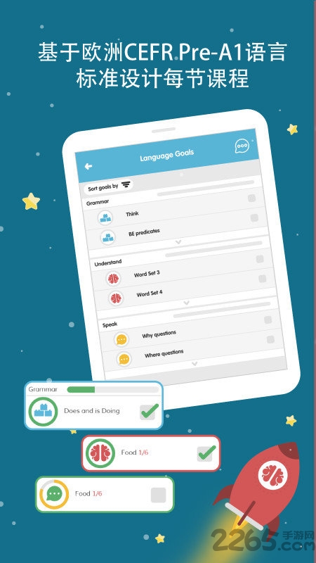 1、基于欧洲CEFR.Pre-A1语言标准设计每节课程;