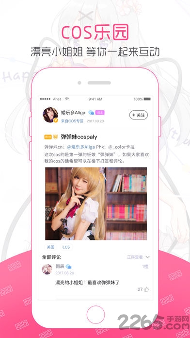 第一弹是一个充满爱的ACGN社区,cosplay玩家社区,是千万二次元爱好者的选择,喜欢动漫、漫画、cosplay的你,在这里都可以随时随地结交二次元小伙伴,无论你是宅男还是腐女,老司机还是小透明,都能发现同好,进入二次元的精彩世界。