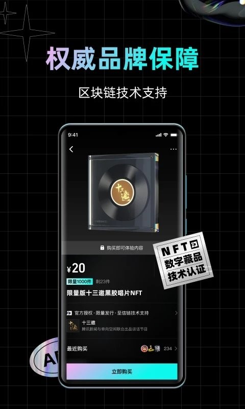 2、为每一个数字藏品赋予价值,能够实现线上的有效交易,是国内首个NFT交易软件,藏品权益信息齐全值得信赖。