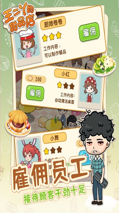 王二丫的甜品店苹果版一款经营恋爱题材的手机游戏,在游戏里学习各种甜品完成更多的订单,雇佣更多的店员自动经营,释放你的双手,还可以通过升级来打造更多的店铺,感兴趣的话就快来下载。