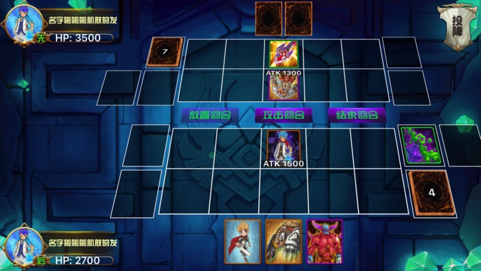 1、攻击表示的两只怪兽战斗,如果攻击相同,则全部死亡送去墓地,否则战斗低的一方死亡,并且对应玩家损失攻击差值的生命值