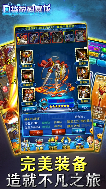 装备、羁绊、宝物、芯片、进化、星宿术等多种方式养成超级神兽,极限策略独步数码世界,成长、成熟、完全、究极体型全面进化,满足外貌协会成员需求!