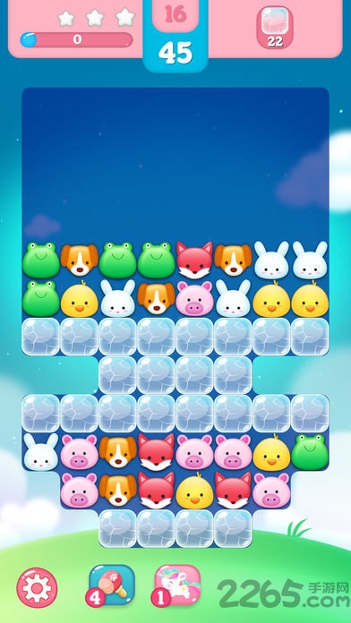 滑动手指拖动三个及以上的同色小动物横竖相连即可消除,完成每关的指定的消除目标或者指定分数,即可过关