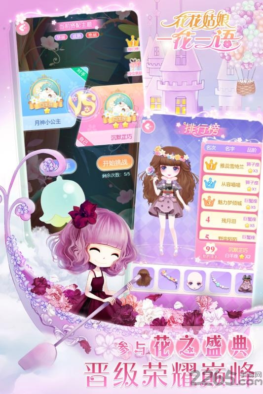 参加花之盛典,秀出你的个性与创意!准备好花花姑娘为你准备的精美服饰,到花之盛典中一展身手,向更高的2265段位冲刺吧!