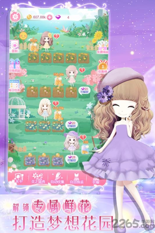解锁花花姑娘,打造你的专属梦想花园!百合、鸢尾、紫罗兰、蒲同英,每一位花花姑娘,都有其独特的特点。她们会帮你照顾好每一块花田,让你的花园中永远生机勃勃!
