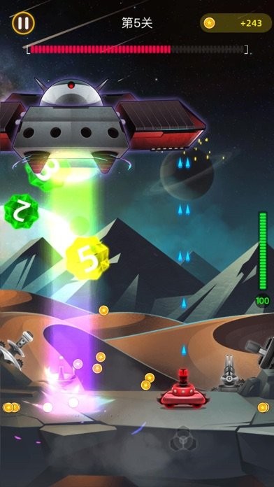 2、升级飞船探索太阳系,无规则运动作战,射击作战自由炮火;
