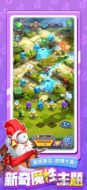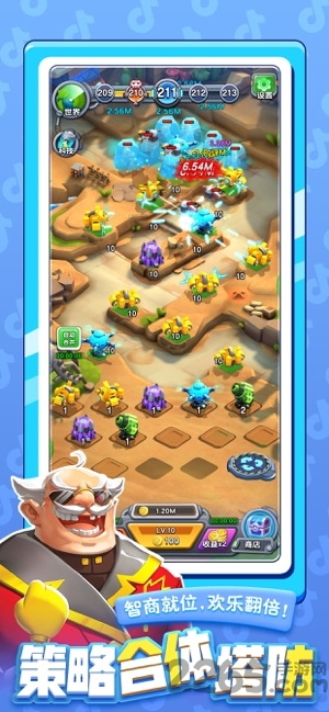 2.合并升级炮塔,有策略的搭配各类炮塔,抵抗不同的敌人。