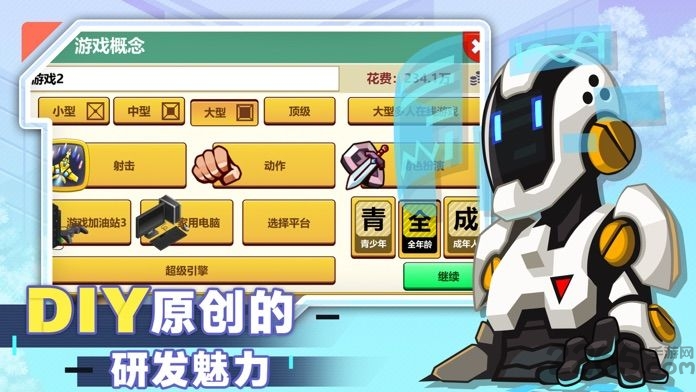 1、从卑微的地下室开始你自己的游戏创业。游戏开发大亨有60多个游戏主题。六种主要的游戏类型和30+主机平台可以与您匹配。DIY创造了新的品种,体验了游戏制作的无穷魅力。