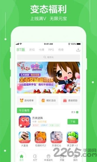 ①海量BT手游,无限元宝钻石,上线送满VIP;高比例充值,官方BT服,充值高达1:500;高爆率快速通关,开启BT手游新玩法!