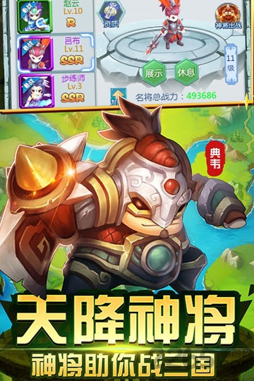 1、个性十足的Q版武将角色设计,畅享炫酷超爽热血国战。