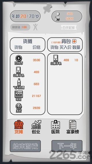 3、玩家需要去注意自己的健康程度,在游戏当中去进行资本累计,去进行创业投资;