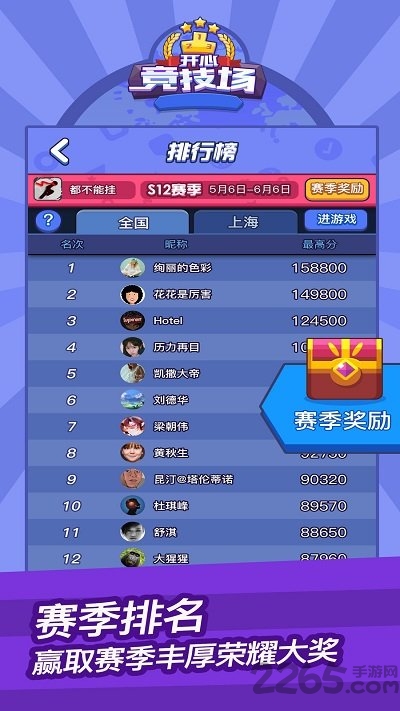 开心竞技场苹果版是一款休闲趣味游戏,游戏中玩家将体验到各种有趣的游戏玩法,超多的游戏元素为你呈现,游戏中玩家可以感受到丰富的乐趣,各种挑战玩法的游戏让你爱不释手,带给你最精彩最刺激的游戏体验,喜欢的朋友来2265安卓网下载吧!