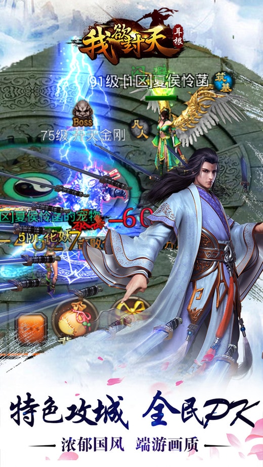 角色养成:法宝进阶、修真破境界、强装备拿神器等形式助你闯荡通天塔,杀boss,王城争霸。