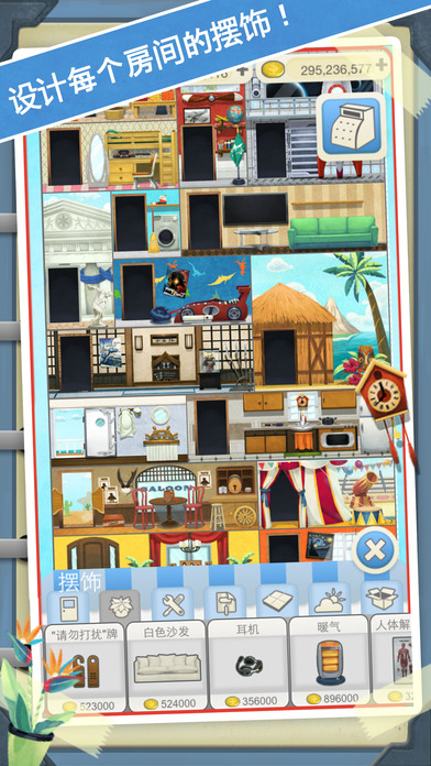 3.家具的摆放,房间的装修全部由你亲手设计,建造你梦想的家园;