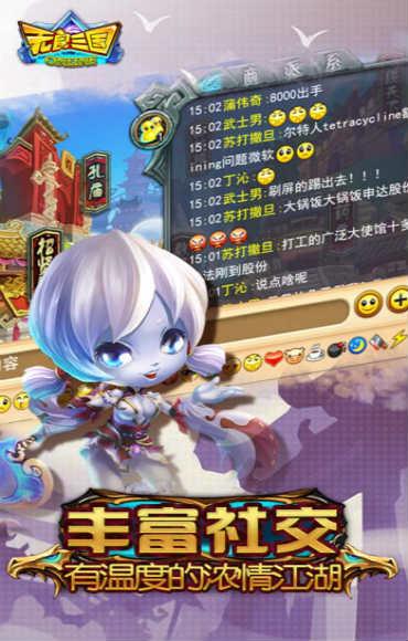 《无良三国》是一款动漫风回合制角色扮演手游,以三国历史为剧情蓝本,加以重新设计的角色形象,带你从独特的视角感受三国,体验只属于三国的爱恨情仇。而战斗方面则由不同的阵型搭配策略,加上实时的局面把握和技能操作,带来一个千变万化考验智慧的回合战略玩法。华丽的卡牌原画、豪华的阵容、逗趣可爱的形象,将陪您一起踏上热血沸腾与理想浪漫之旅。