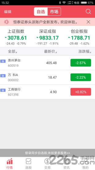 3、自选同步:绑定已有的恒泰证券账号,快速获取原账号下的自选股,省时省力。